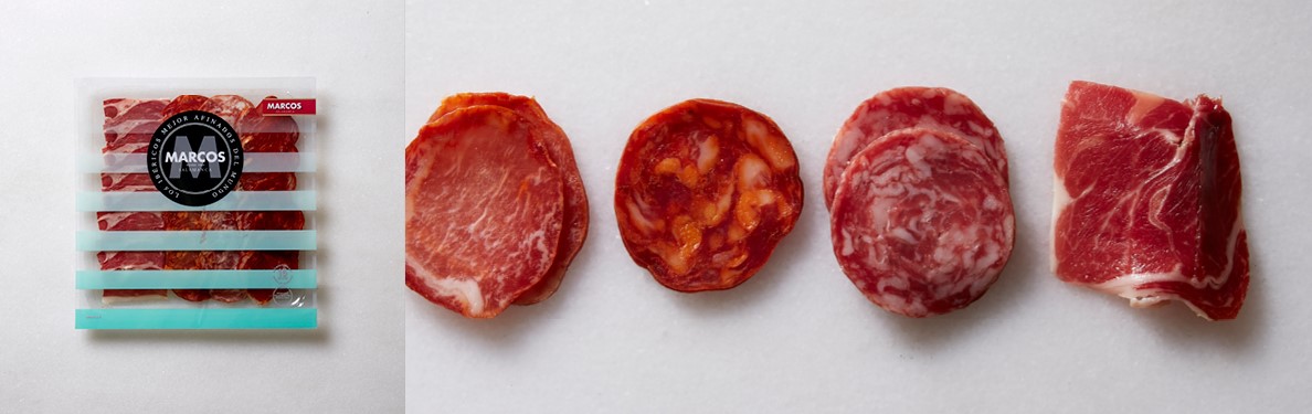 <p><b>Ingredientes: </b>Paleta de cerdo, sal, azúcares, conservadores (E-250 y E-252) y antioxidantes (E-331 y E-301). Lomo de Cerdo, sal, pimentón D.O. de "La Vera", Leche en polvo, ajo en polvo, azúcares, conservadores (E-250 y E-252), antioxidantes (E-331 y E-301). Magros de cerdo, sal, pimentón D.O. La Vera, leche en polvo, ajo en polvo, conservadores (E-250 y E-252), corrector de la acidez (E-331) y orégano. Magros de cerdo, sal, vino fino, leche en polvo, dextrosa, pimienta blanca, ajo en polvo, ascorbato sódico (E-301), conservadores (E-250 y E-252), corrector de la acidez (E-331) y orégano</p>